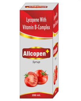 ALLCOPEN 200 ml COMPOSITION INDICATION PRICE COMPOSITION Lycopene with Vitamin B-Complex INDICATION REDUCE CANCER RISK.PROTECTION AGAINST HEART DISEASE.REDUCE RISK OF MASCULAR DEGENERATION.IMPROVE ENERGY LEVELS.IMPROVE EYE SIGHTNESS. PRICE Rs. 225/- Enquiry Now View More Products