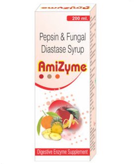 Amizyme 200 ml COMPOSITION INDICATION PRICE COMPOSITION Pepsin & Fungal Diastase Syrup INDICATION SUPPORT HEALTHY DIGESTION.OPTIMIZE THE BREAKDOWN OF FATS.PROMOTE OPTIMAL NUTRIENT ABSORPTION.REDUCE GAS, BLOATING, INDIGESTION, AND CONSTIPATION FOLLOWING MEALS.HELP YOUR BODY PROCESS DIFFICULT TO DIGEST FOODS. PRICE Rs. 162/- Enquiry Now View More Products