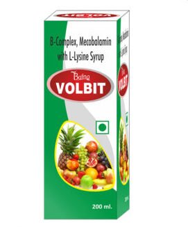 VOLBIT 200 ml COMPOSITION INDICATION PRICE COMPOSITION B-Complex, Mecobalamin with L-Lysine Syrup INDICATION HELPS WITH RED BLOOD CELL FORMATION AND ANEMIA PREVENTION.PREVENT MAJOR BIRTH DEFECTS.SUPPORT BONE HEALTH AND PREVENT OSTEOPOROSIS.REDUCE YOUR RISK OF MUSCULAR DEGENERATICH.IMPROVE MOOD AND SYMPTOMS OF DEPRESSION.BENEFITS YOUR BRAIN BY PREVENTING THE LOSS OF NEURONS. PRICE Rs. 155/- Enquiry Now View More Products